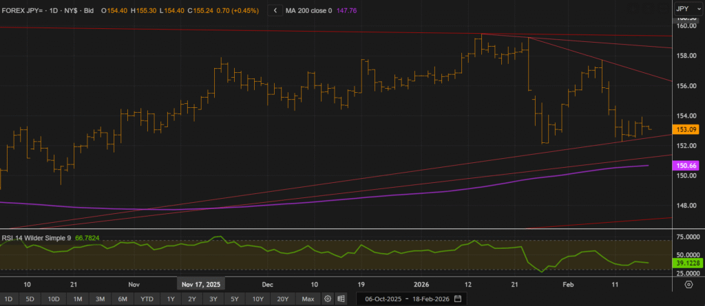We have seen a bit of consolidation near range lows over the last few sessions, and the pair seems to have found some support just above the 152.00 level. From an interest rate differential perspective, traders are now watching both sides of the currency equation closely for fresh moves with a particular focus on Bank of Japan rate hike expectations – some are calling for a March hike, although April looks more likely, and US data for indications on when we will see a cut from the Fed.